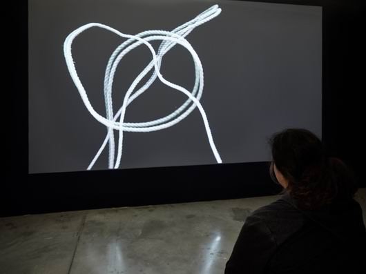 En l’absence de gravité, un objet se transforme subi¬tement et génère de manière autonome des formes et des sons. Réalisée lors d’un vol parabolique qui permet d’accéder à des périodes d’impesanteur, Détachement donne libre au cours à l’animalité d’une corde en chanvre dont les mouvements sont à l’origine de la composition sonore. L’œuvre donne ainsi à voir et à entendre les mouvements de l’impesanteur.