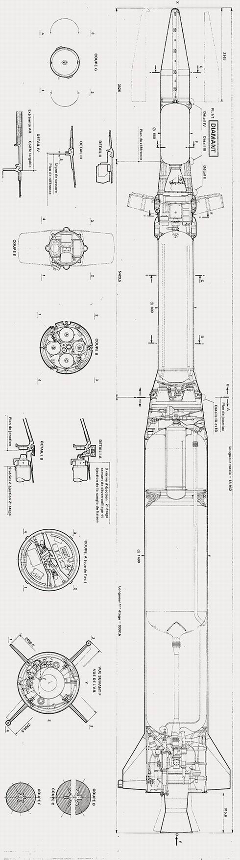 Plan de la fusée Diamant, 1965